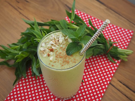 This is just like a yummy spearmint thick shake without the dairy and refined sugars. You can add more mint leaves for extra mintiness (if that's a word). This isn't just a fresh tasting smoothie, it's nutritionally balanced to get you through to lunch without snacking. Optional extras that I add to my smoothies are, 1 tablespoon of gelatin (Great Lakes green carton), probiotics and super greens powder if I haven't got fresh greens on hand.