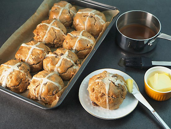Nut-Free Hot Cross Buns - Next is my nut-free Hot Cross Buns - Most gluten-free/paleo versions of Hot Cross Buns have a cake texture. I'm delighted to say that this recipe has a more bread-like texture with the bonus of being nut-free. These traditional Easter Buns are spiced with cinnamon and allspice, then glazed to add a beautiful shine to the tops.