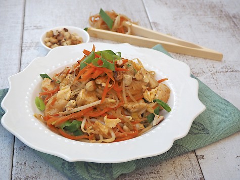 Pad Thai (nut butter is used in the sauce and cashews sprinkled on top) - click for recipe