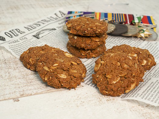 ANZAC biscuits have long been associated with the “Australian and New Zealand Army Corps”. They go back to World War 1, when our troops were stationed on the shores of Gallipoli. My grandfather was one of them. Anzac tiles or Hardtack biscuits, as they were called then, were part of a soldiers rations with beef bully. They were used as bread because the ingredients didn’t spoil easily or go mouldy like bread but were very hard to eat. The mothers, wives and girlfriends of Australian troops back home got wind of the terrible Anzac tiles and were reportedly concerned that their boys were not getting enough nutrients. These women used the recipe for Scottish oatcakes as a base and developed what we know of today as the Anzac Biscuit.
