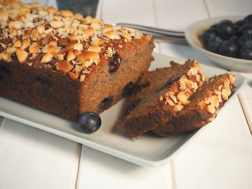 This delicious loaf has been sweetened only with apples, blueberries and a few dates. I’ve also used ground cinnamon and ginger, these spices help to reduce the amount of sweetener needed. This loaf is full of protein, healthy fats and fruit, making it perfect for active children at a picnic. (This recipe is also suitable to bake in muffin tins). Apple and Blueberry Loaf is nut-free if you omit the macadamia nut topping.