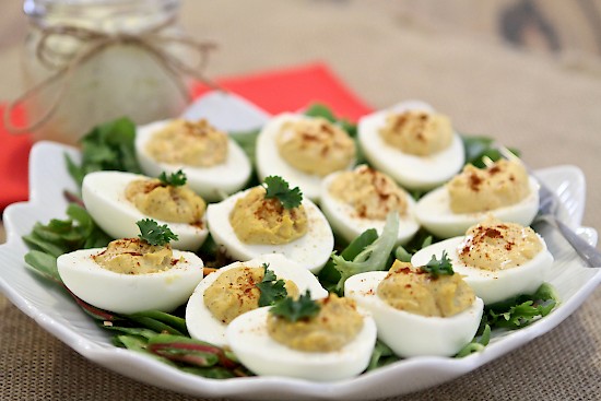 Curried eggs are a great finger food for a picnic. They also work well added to salad platters. My family and grandchildren love them and we couldn't go on a picnic without these eggs. This recipe was adapted from my mother’s good old trusty recipe I remember as a child.